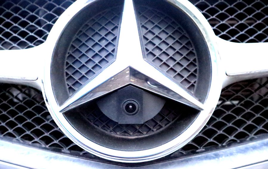 Κάμερα Εμπρός για Mercedes, Front view camera designed to fit into the large Mercedes badge on the front grille. 170° viewing angle lens. 762 x 504 pixel resolution, Waterproof and shockproof, Color night vision, Optional distance guidelines, NTSC video format.