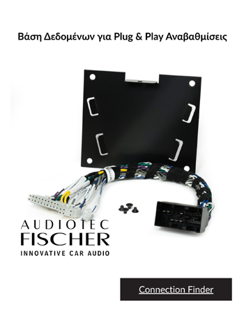 Αυτή η βάση δεδομένων περιλαμβάνει πληροφορίες για: καλωδιώσεις και αντάπτορες | ηχεία ειδικά για κάθε όχημα | ηχητικά interfaces | |καθώς και ολοκληρωμένες Plug & Play αναβαθμίσεις ήχου