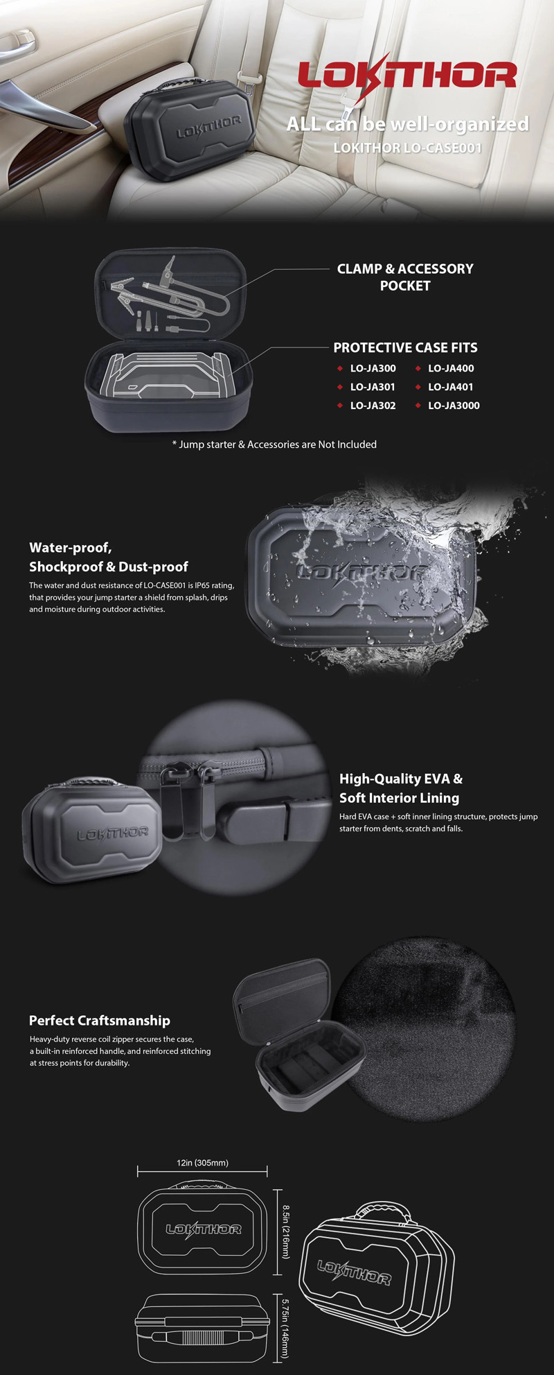 LOK-CASE01 is IP65 rating, which provides your jump starter a shield from