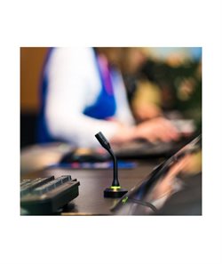 Το μικρόφωνο Halo με λαιμό διαθέτει ακύρωση θορύβου και φωτεινή ένδειξη στη βάση του μικροφώνου. Η φωτεινή ένδειξη ανάβει πράσινο όταν το σύστημα λειτουργεί σωστά και κόκκινο όταν ανιχνεύεται σφάλμα.Μπορεί είτε να βιδωθεί είτε να τοποθετηθεί χρησιμοποιώντας ένα τυπικό αυτοκόλλητο μαξιλαράκι, ενώ το μικρόφωνο διατίθεται σε μεταλλικό ή χωρίς ένδειξη φωτοστέφανου LED.Το Μικρόφωνο Contacta Halo προορίζεται για χρήση με τα συστήματα βρόχου Contacta "Under the counter" και "Above the counter". Διαθέτει κάψουλα ακύρωσης θορύβου και φωτιζόμενο δακτύλιο βάσης που εμφανίζει την κατάσταση λειτουργίας και βλάβης. Είναι κατάλληλο για χρήση σε καταστάσεις που αντιμετωπίζουν πελάτες όπου μπορεί να υπάρχει υψηλό επίπεδο θορύβου περιβάλλοντος και μπορεί εύκολα να τοποθετηθεί σε ένα τραπέζι με χρήση τυπικού αυτοκόλλητου pad.ΕφαρμογέςΓια χρήση σε οποιαδήποτε κατάσταση όπου πραγματοποιείται επικοινωνία μία προς μία σε πάγκο, θάλαμο ή γραφείο, όπως σε:• Τράπεζες• Ταχυδρομεία• Σούπερ μάρκετ• Θέατρα• Κέντρα Πληροφόρησης• ΑεροδρόμιαΧαρακτηριστικά: